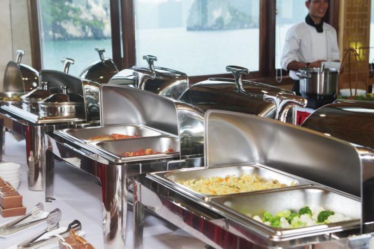 18h30: Phục vụ khách ăn tối trên thuyền.